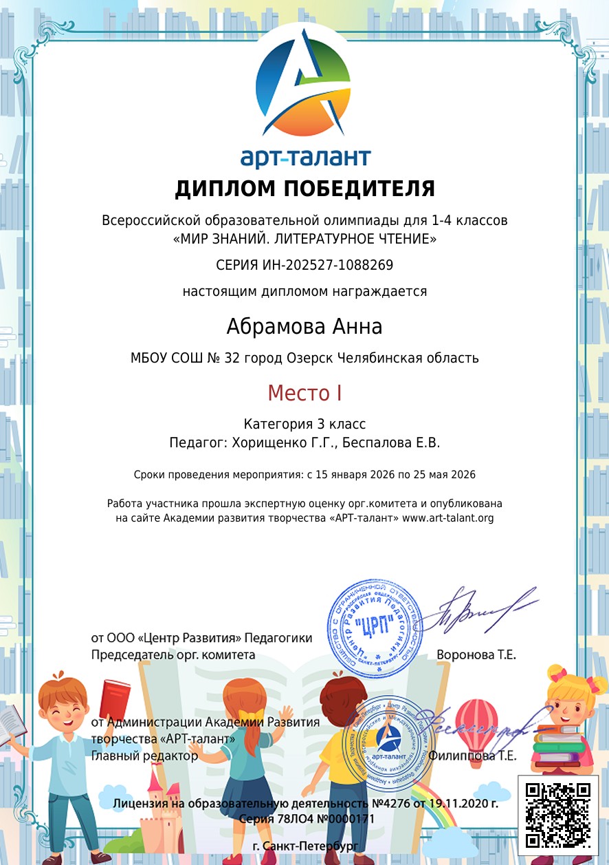Олимпиада по литературному чтению проводится для учащихся 1-4 классов. Участники, педагоги и родители получают награды сразу после приема заявки.