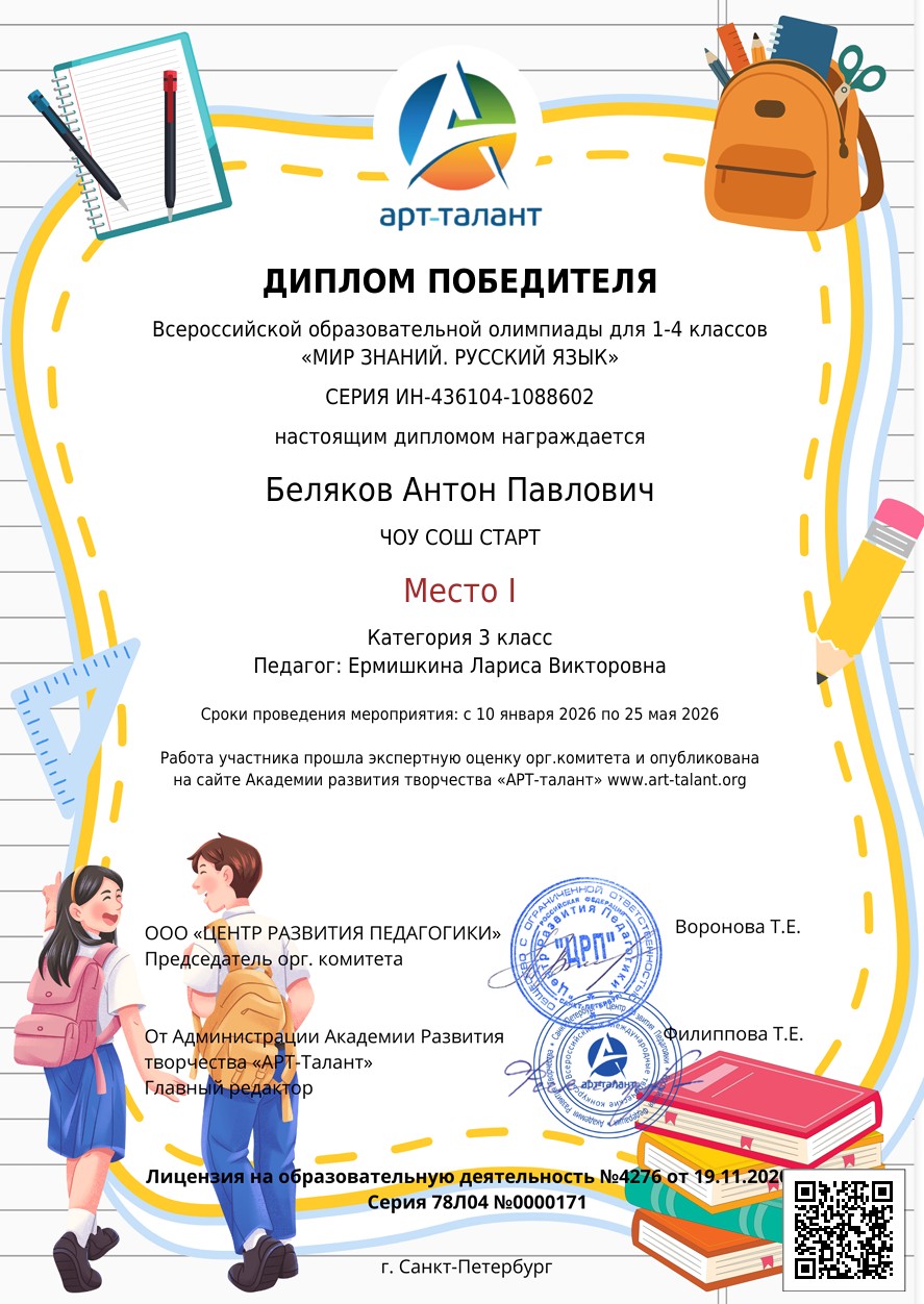 Олимпиада по русскому языку проводится для учащихся 1-4 классов. Участники, педагоги и родители получают награды сразу после приема заявки.