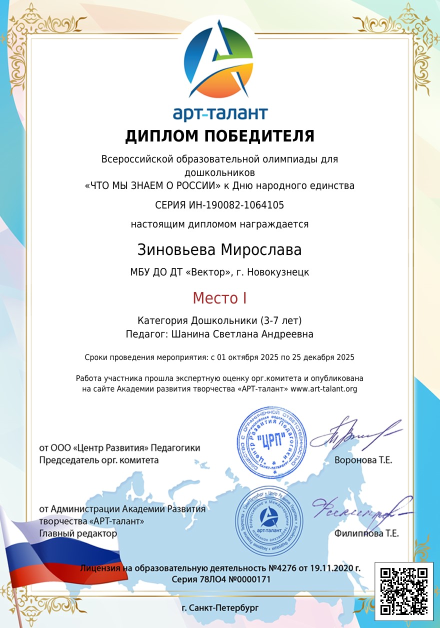 Всероссийская образовательная олимпиада для дошкольников «ЧТО МЫ ЗНАЕМ О РОССИИ» к Дню народного единства