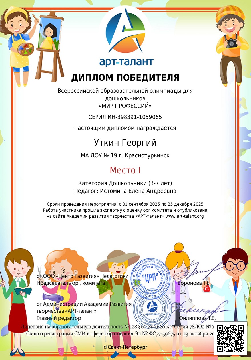 Всероссийская образовательная олимпиада для дошкольников «МИР ПРОФЕССИЙ»