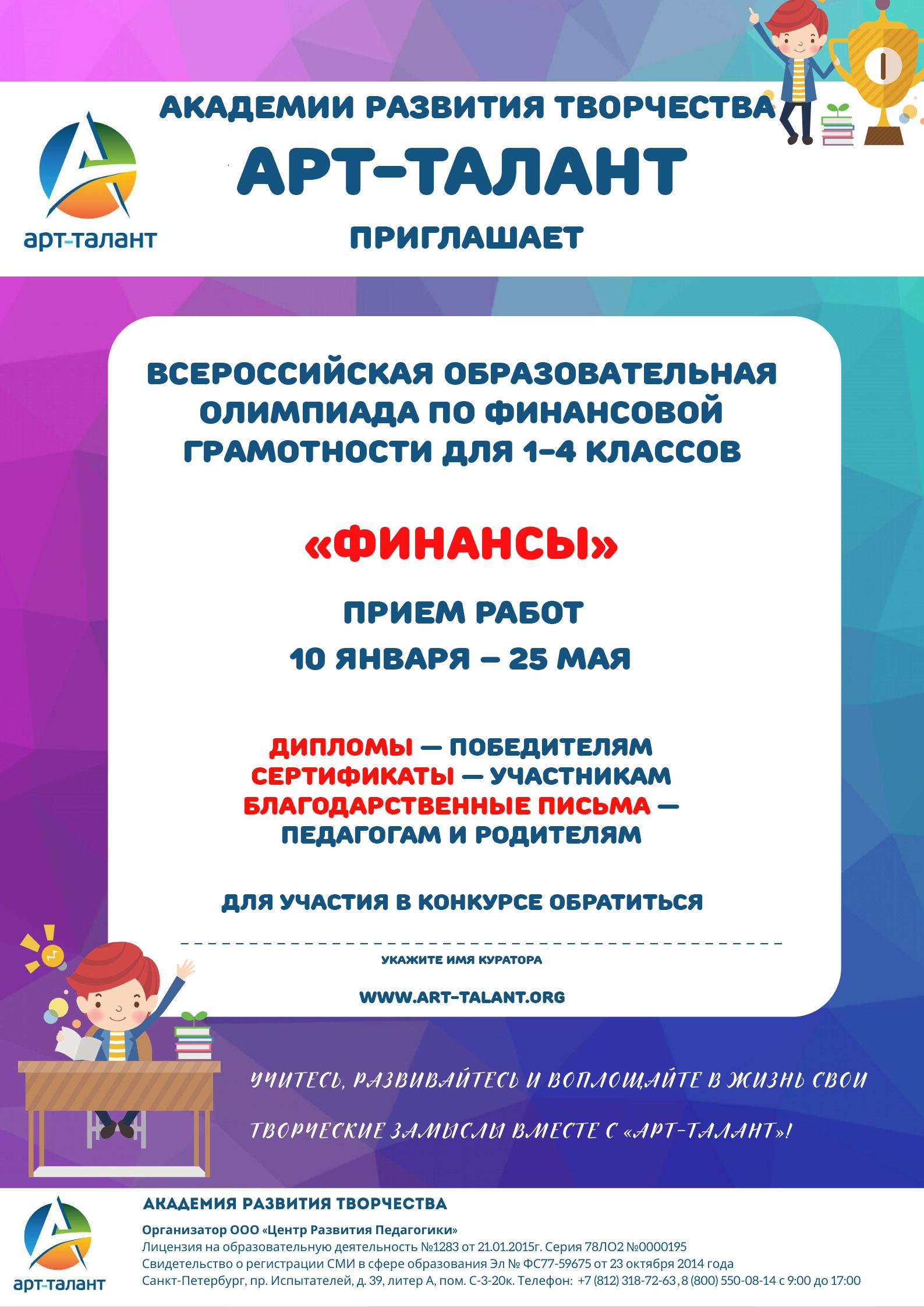 Всероссийская образовательная олимпиада по финансовой грамотности для 1-4 классов «ФИНАНСЫ»