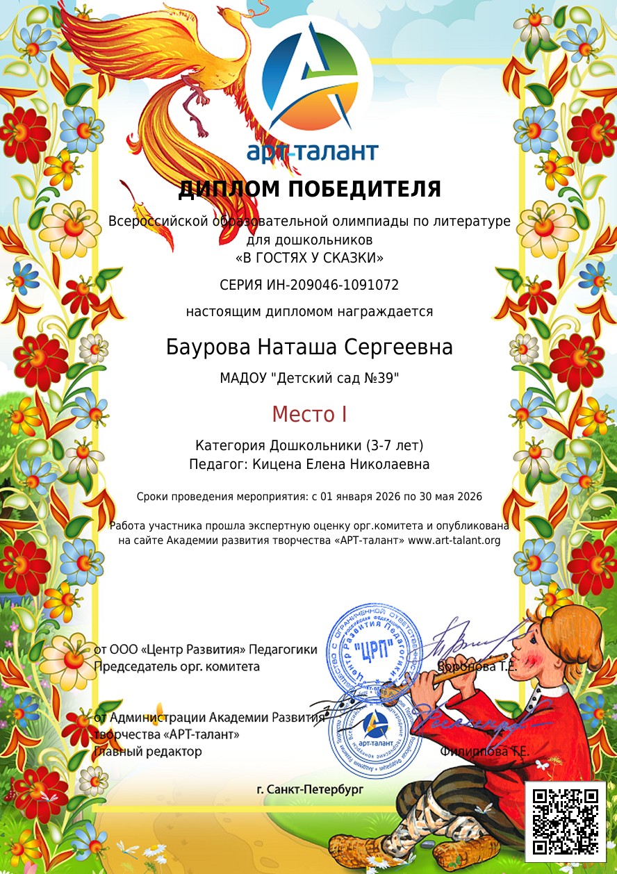 Олимпиада по сказкам проводится для детей от 5 до 7 лет. Участники, педагоги и родители получают награды сразу после приема заявки.