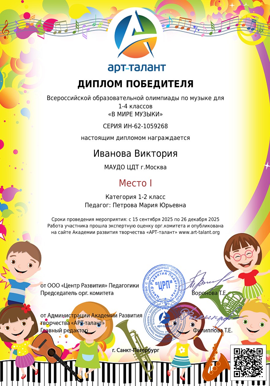 Олимпиада по музыке проводится для учащихся 1-4 классов. Участники, педагоги и родители получают награды сразу после приема заявки.