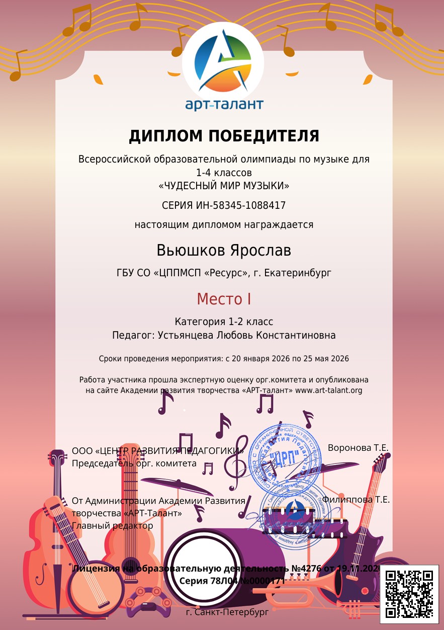 Олимпиада по музыке проводится для учащихся 1-4 классов. Участники, педагоги и родители получают награды сразу после приема заявки.