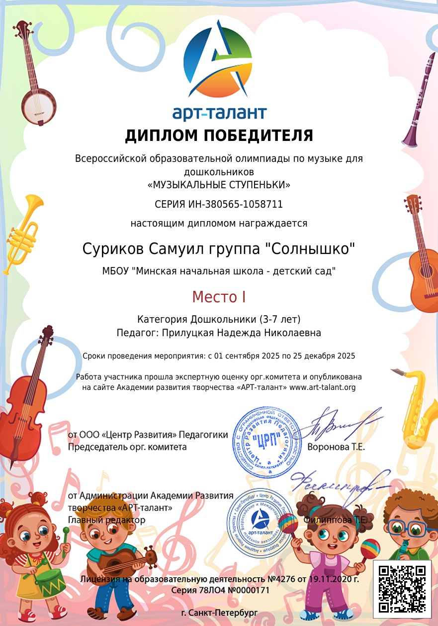 Олимпиада по музыке проводится для детей от 5 до 7 лет. Участники, педагоги и родители получают награды сразу после приема заявки.