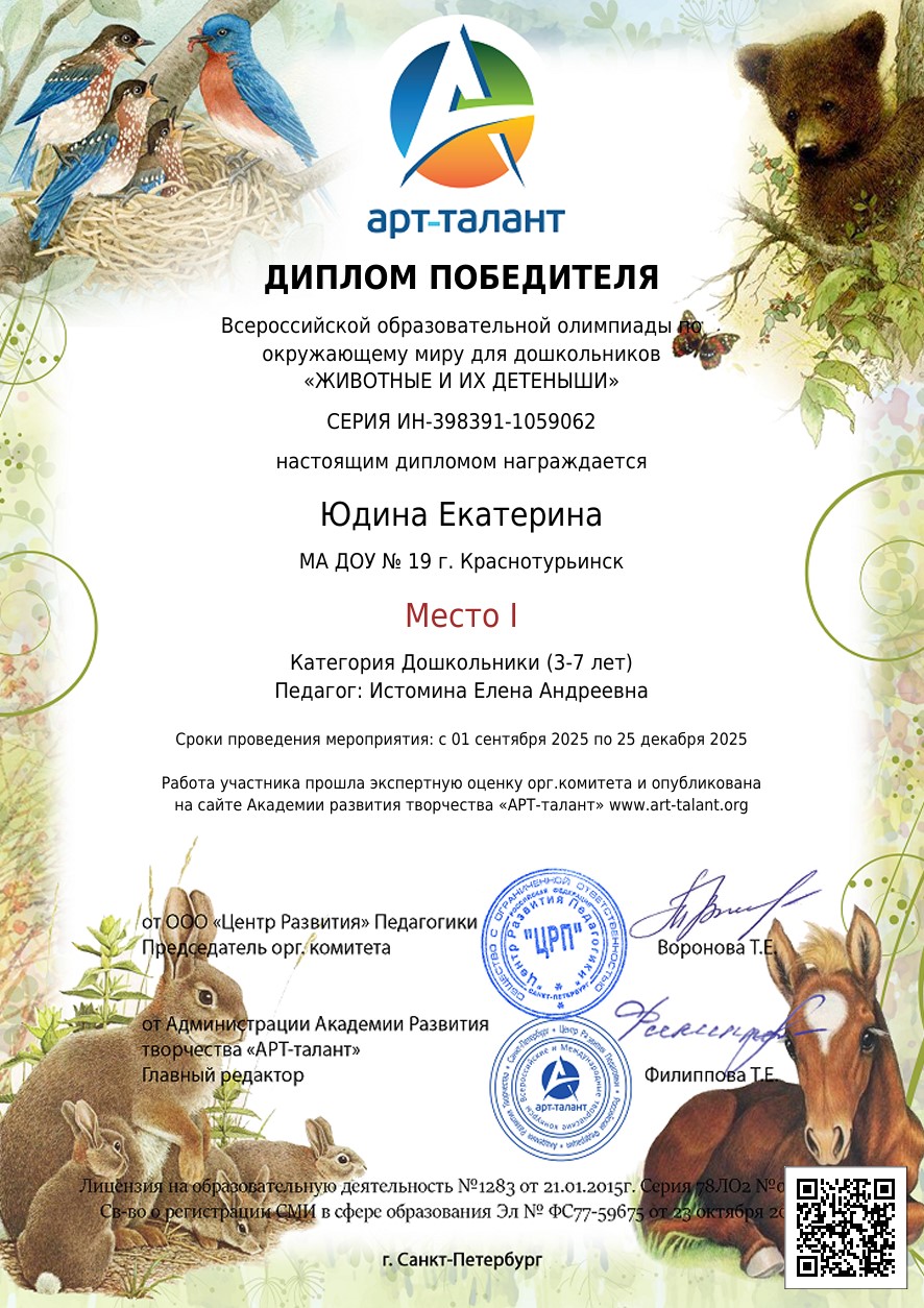 Всероссийская образовательная олимпиада по окружающему миру для дошкольников «ЖИВОТНЫЕ И ИХ ДЕТЕНЫШИ»