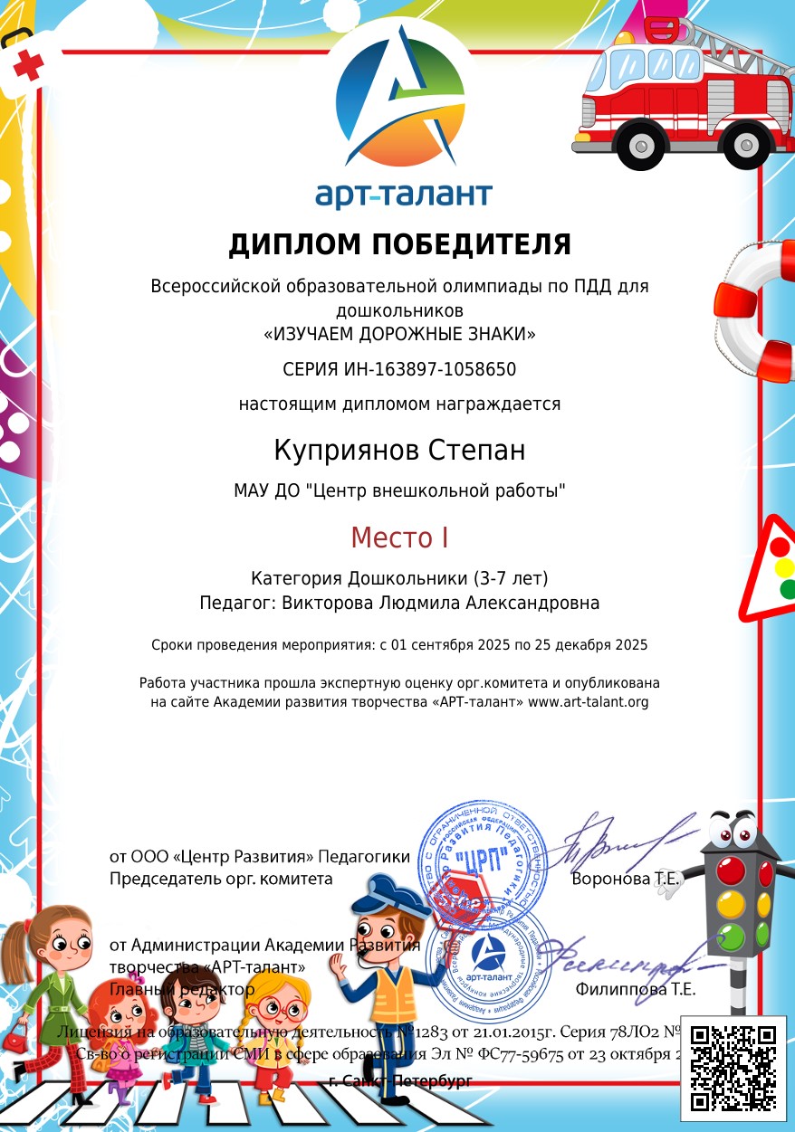 Всероссийская образовательная олимпиада по ПДД для дошкольников «ИЗУЧАЕМ ДОРОЖНЫЕ ЗНАКИ»