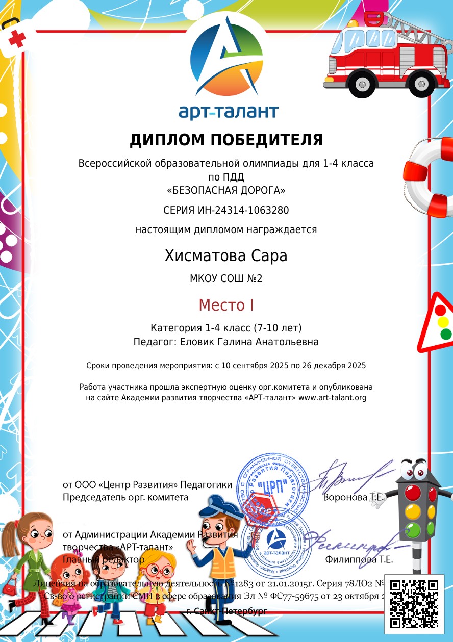 Всероссийская образовательная олимпиада для 1-4 класса по ПДД «БЕЗОПАСНАЯ ДОРОГА»