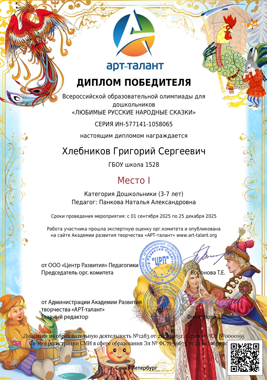 Всероссийская образовательная олимпиада для дошкольников «ЛЮБИМЫЕ РУССКИЕ НАРОДНЫЕ СКАЗКИ»