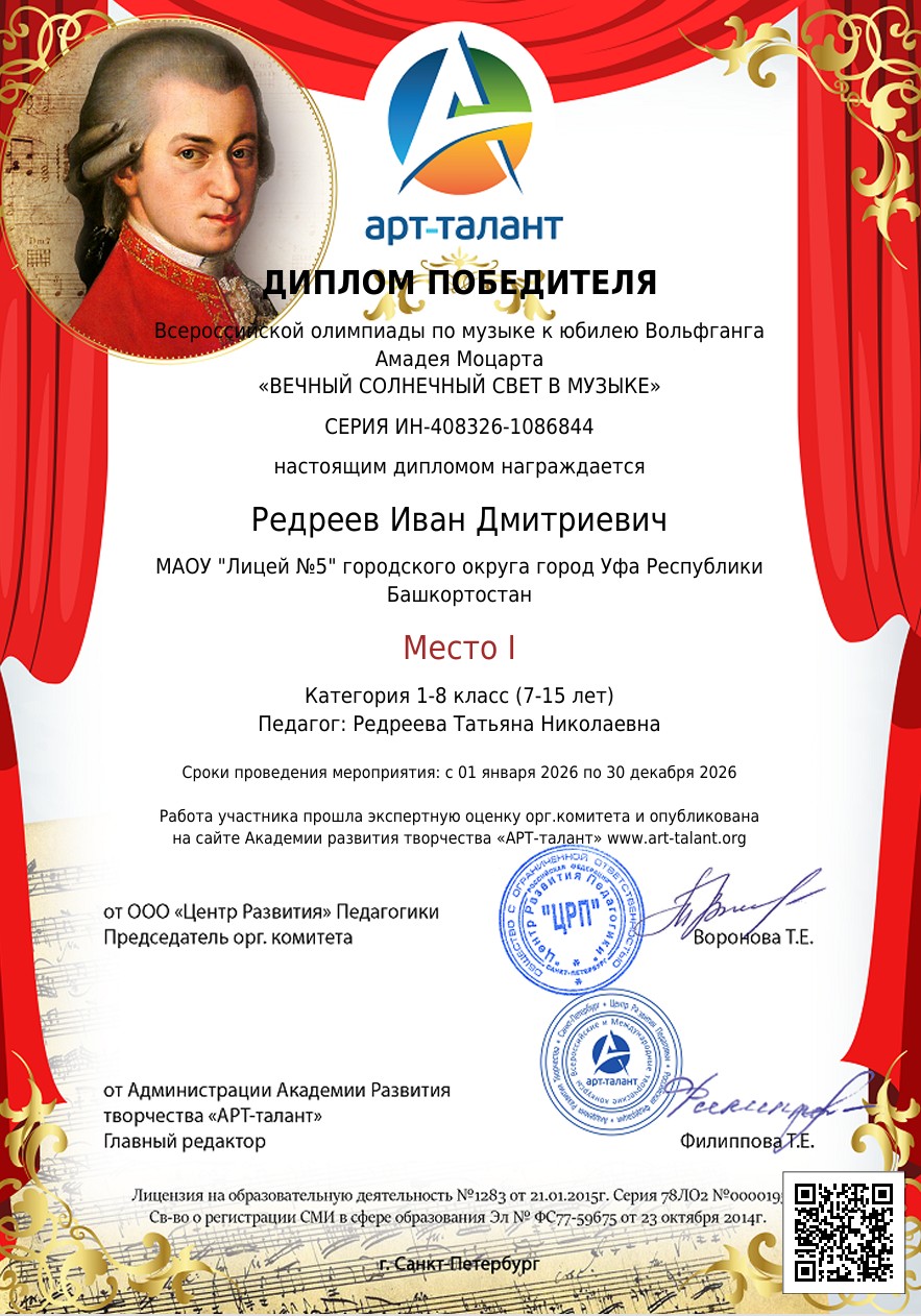 Всероссийская олимпиада по музыке к юбилею Вольфганга Амадея Моцарта «ВЕЧНЫЙ СОЛНЕЧНЫЙ СВЕТ В МУЗЫКЕ»