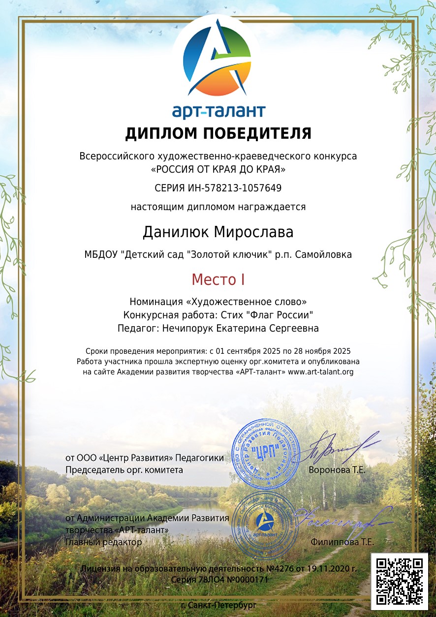 Всероссийский художественно-краеведческий конкурс «РОССИЯ ОТ КРАЯ ДО КРАЯ»
