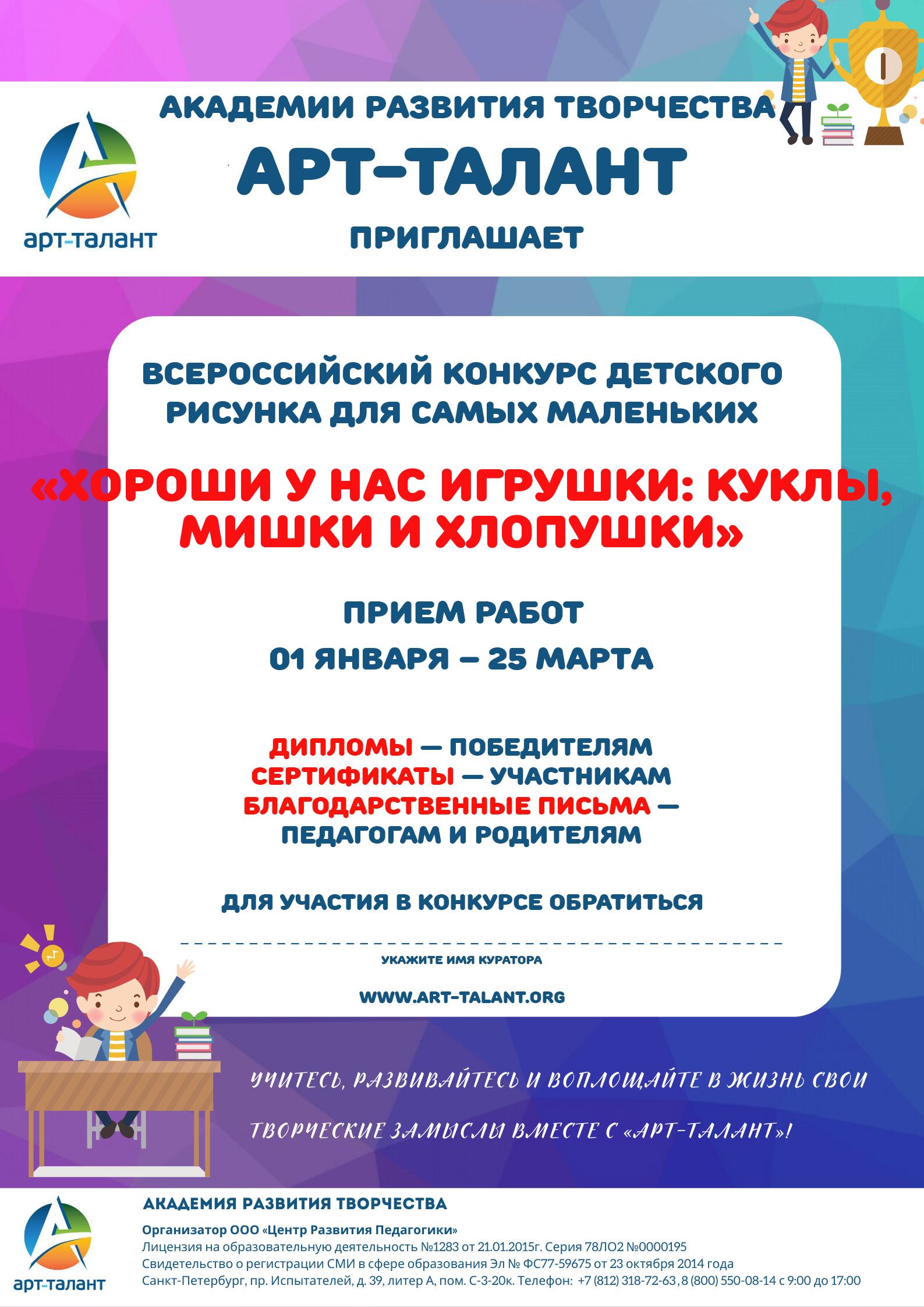 Всероссийский конкурс детского рисунка для самых маленьких «ХОРОШИ У НАС ИГРУШКИ: КУКЛЫ, МИШКИ И ХЛОПУШКИ»