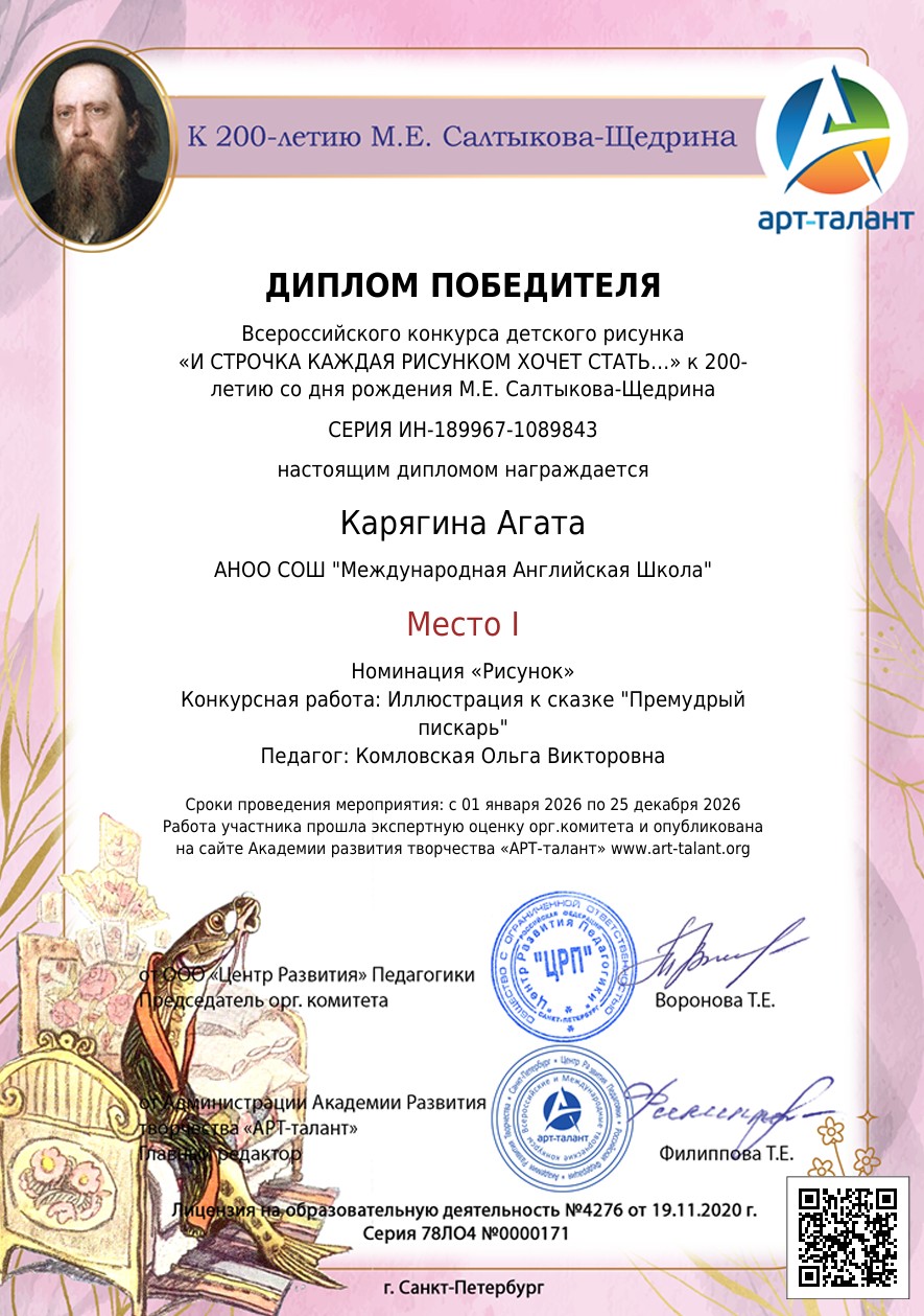Всероссийский конкурс детского рисунка «И СТРОЧКА КАЖДАЯ РИСУНКОМ ХОЧЕТ СТАТЬ…» к 200-летию со дня рождения М.Е. Салтыкова-Щедрина
