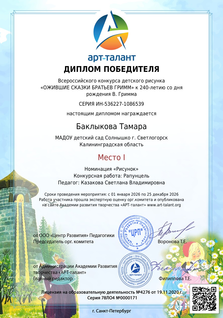 Всероссийский конкурс детского рисунка «ОЖИВШИЕ СКАЗКИ БРАТЬЕВ ГРИММ» к 240-летию со дня рождения В. Гримма