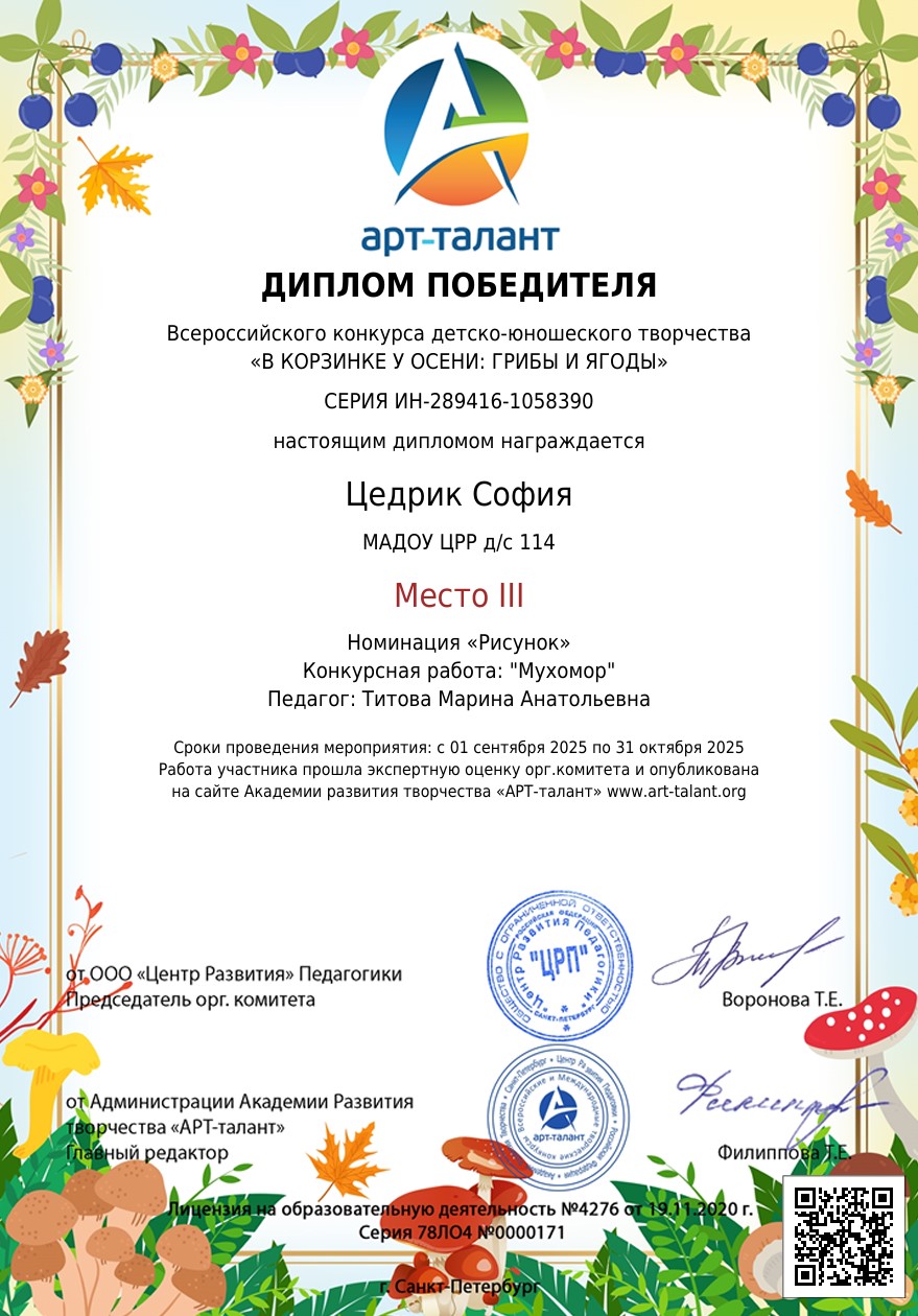 Всероссийский конкурс детско-юношеского творчества «В КОРЗИНКЕ У ОСЕНИ: ГРИБЫ И ЯГОДЫ»