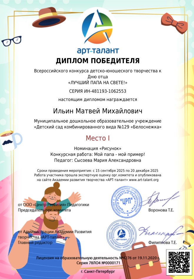 Всероссийский конкурс детско-юношеского творчества к Дню отца «ЛУЧШИЙ ПАПА НА СВЕТЕ!»