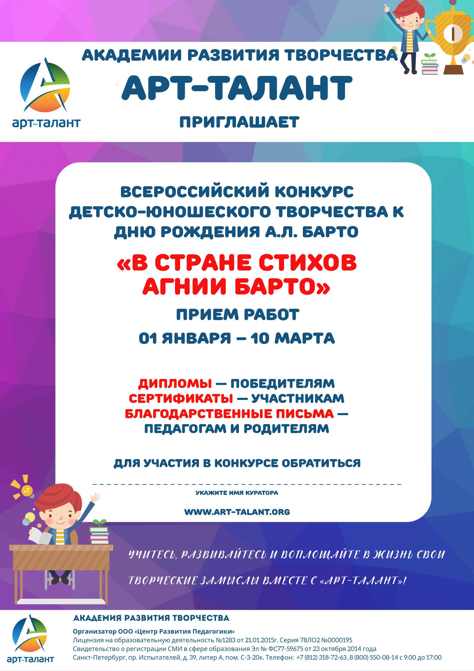 Всероссийский конкурс детско-юношеского творчества к дню рождения А.Л. Барто «В СТРАНЕ СТИХОВ АГНИИ БАРТО»