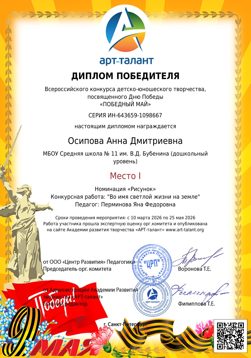 Всероссийский конкурс детско-юношеского творчества, посвященный Дню Победы «ПОБЕДНЫЙ МАЙ»