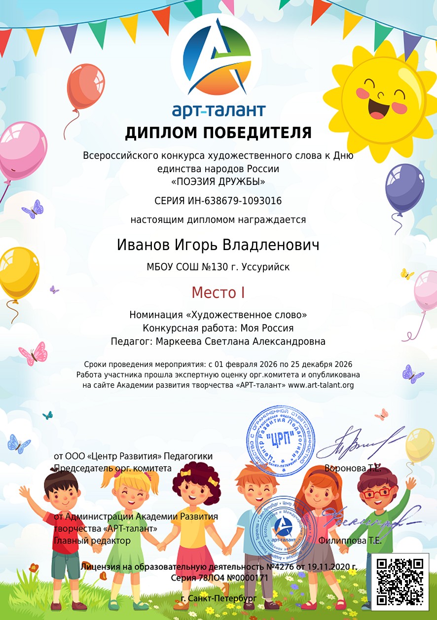 Всероссийский конкурс художественного слова к Дню единства народов России «ПОЭЗИЯ ДРУЖБЫ»