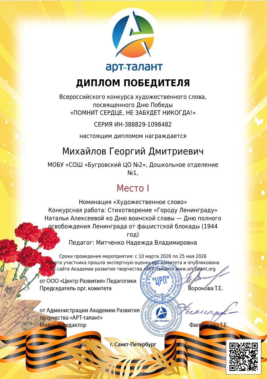 Всероссийский конкурс художественного слова, посвященный Дню Победы «ПОМНИТ СЕРДЦЕ, НЕ ЗАБУДЕТ НИКОГДА!»