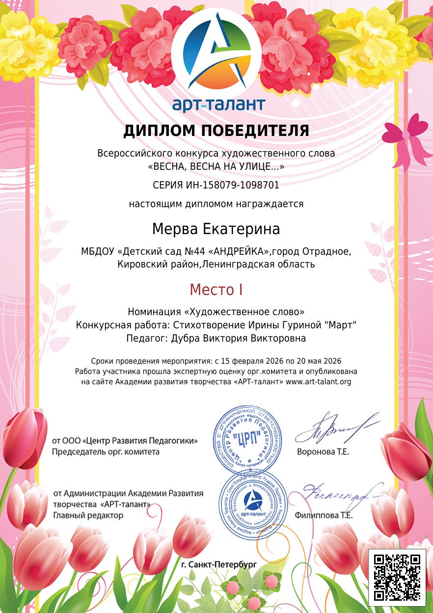 Всероссийский конкурс художественного слова «ВЕСНА, ВЕСНА НА УЛИЦЕ...»