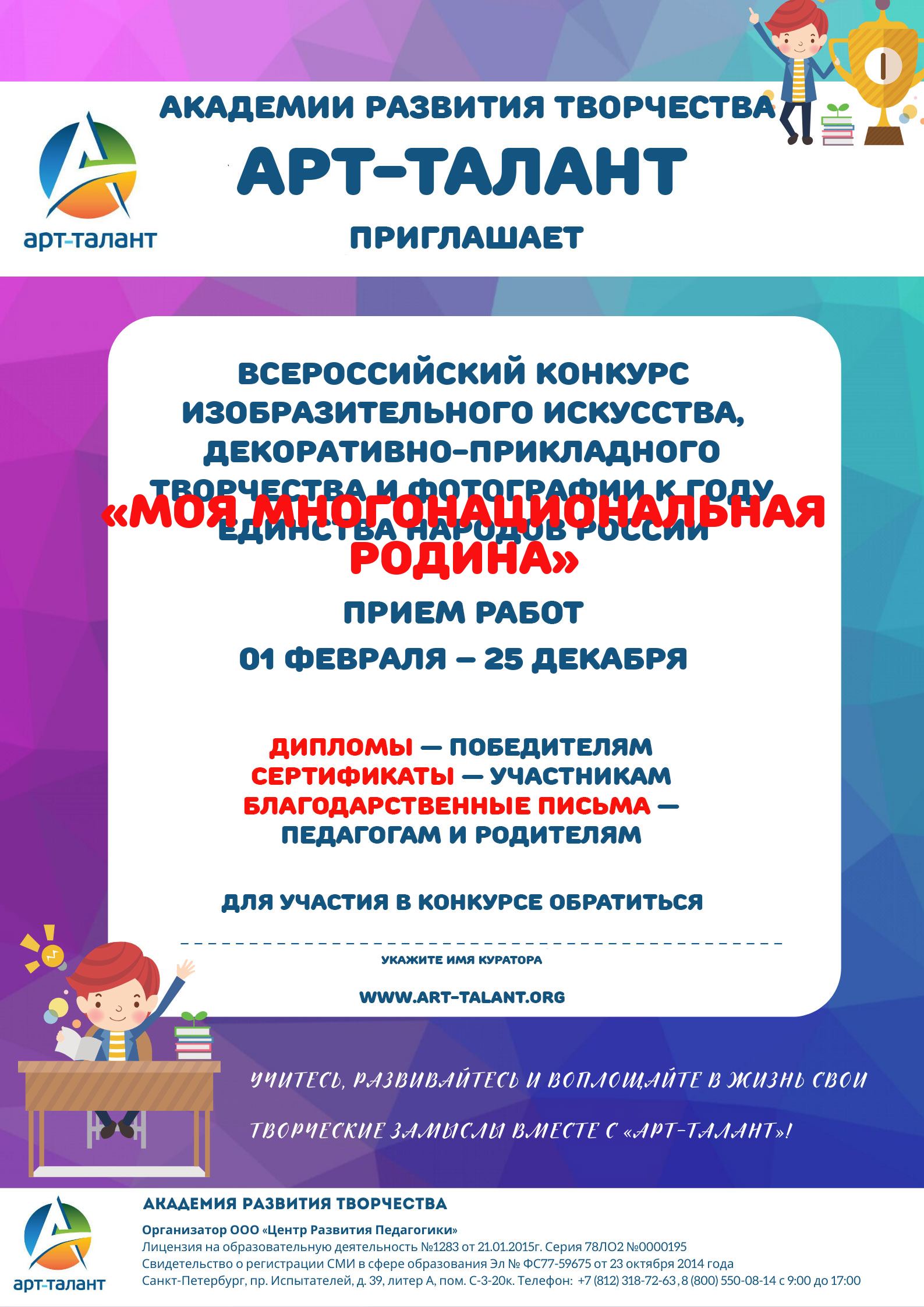 Всероссийский конкурс изобразительного искусства, декоративно-прикладного творчества и фотографии к Году единства народов России «МОЯ МНОГОНАЦИОНАЛЬНАЯ РОДИНА»