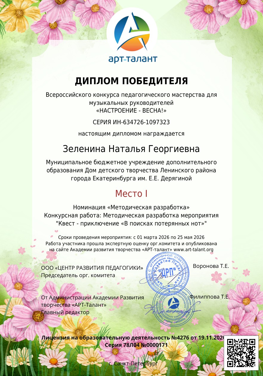 Всероссийский конкурс педагогического мастерства для музыкальных руководителей «НАСТРОЕНИЕ - ВЕСНА!»