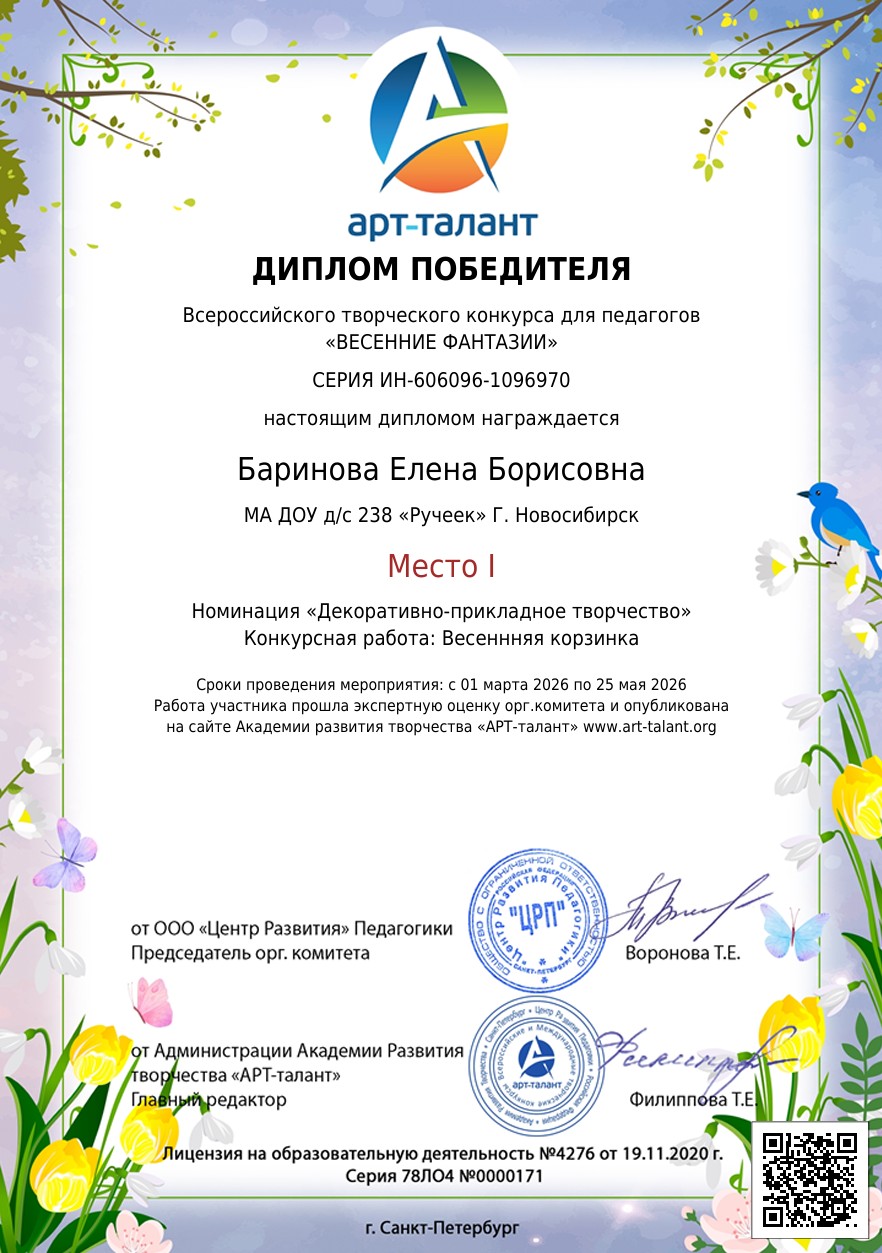 Всероссийский творческий конкурс для педагогов «ВЕСЕННИЕ ФАНТАЗИИ»