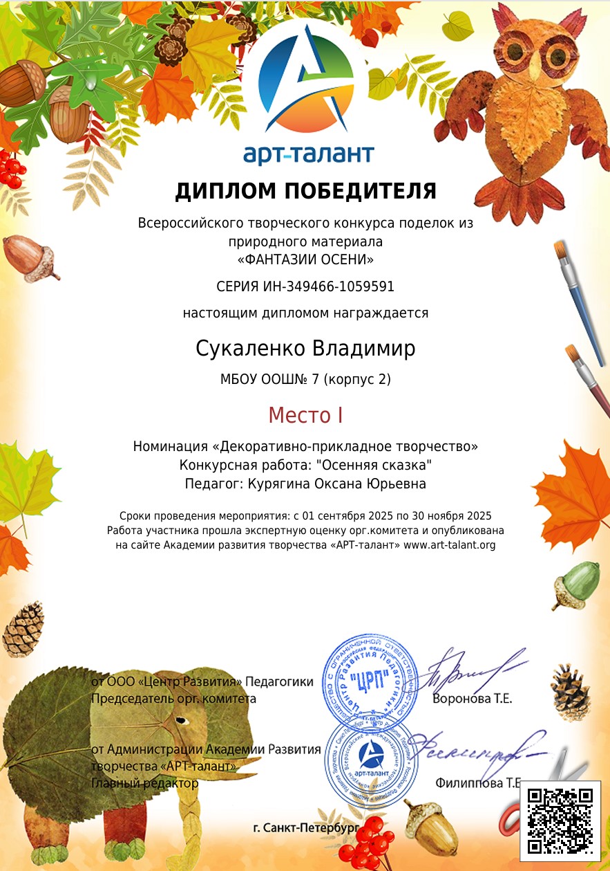 Всероссийский творческий конкурс поделок из природного материала «ФАНТАЗИИ ОСЕНИ»